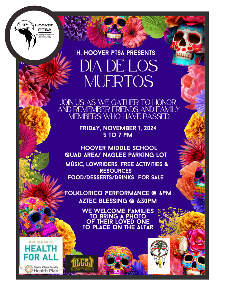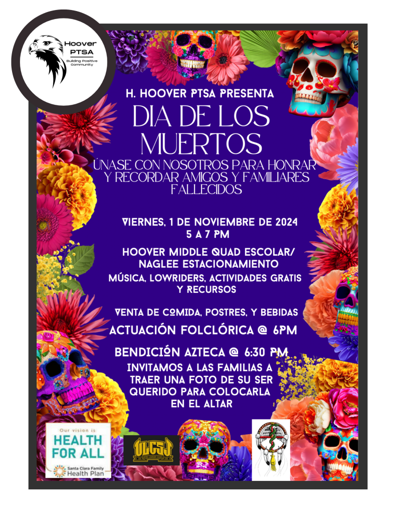 Viernes, 1 de noviembre de 2024 5 a 7 PM. Hoover Middle Quad escolar/Naglee estacionamiento