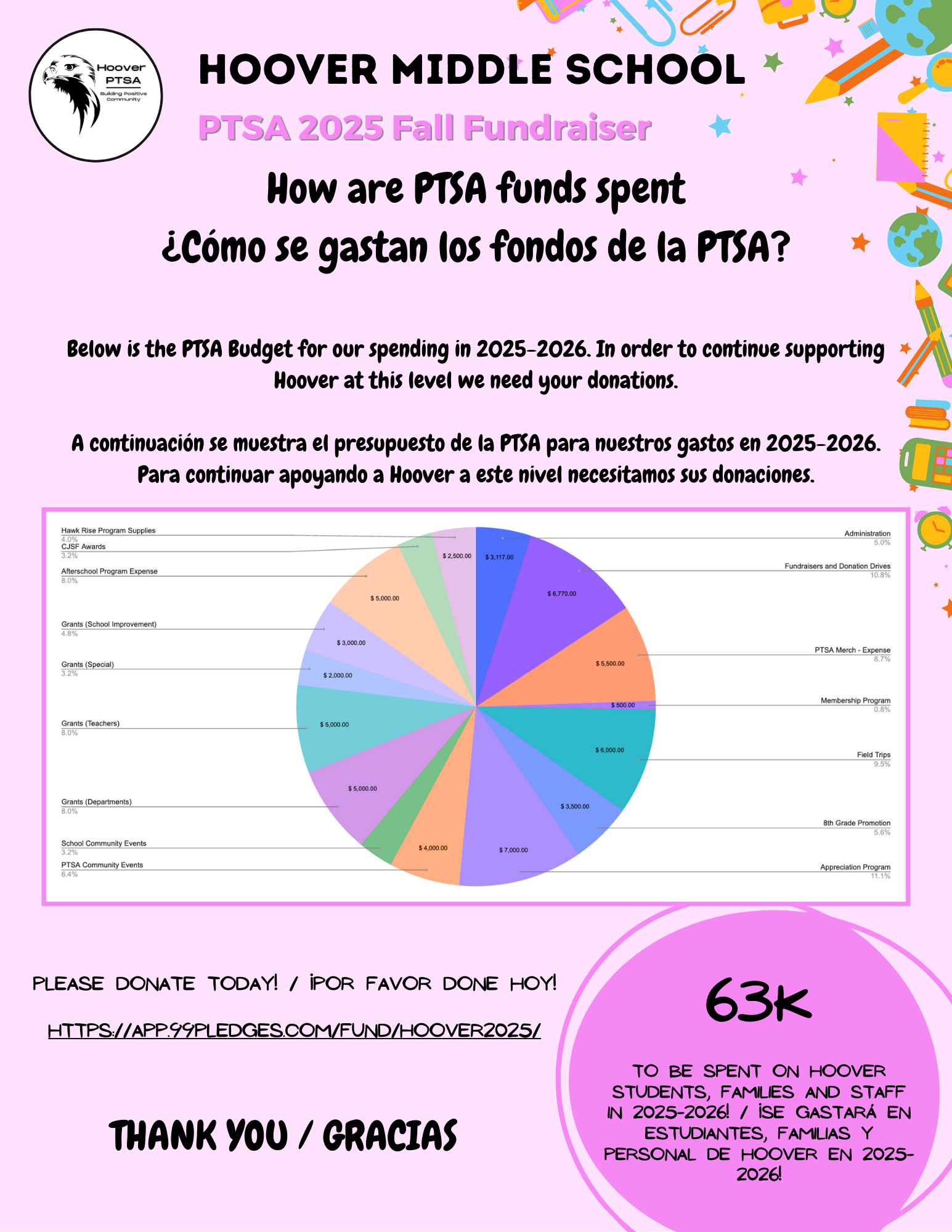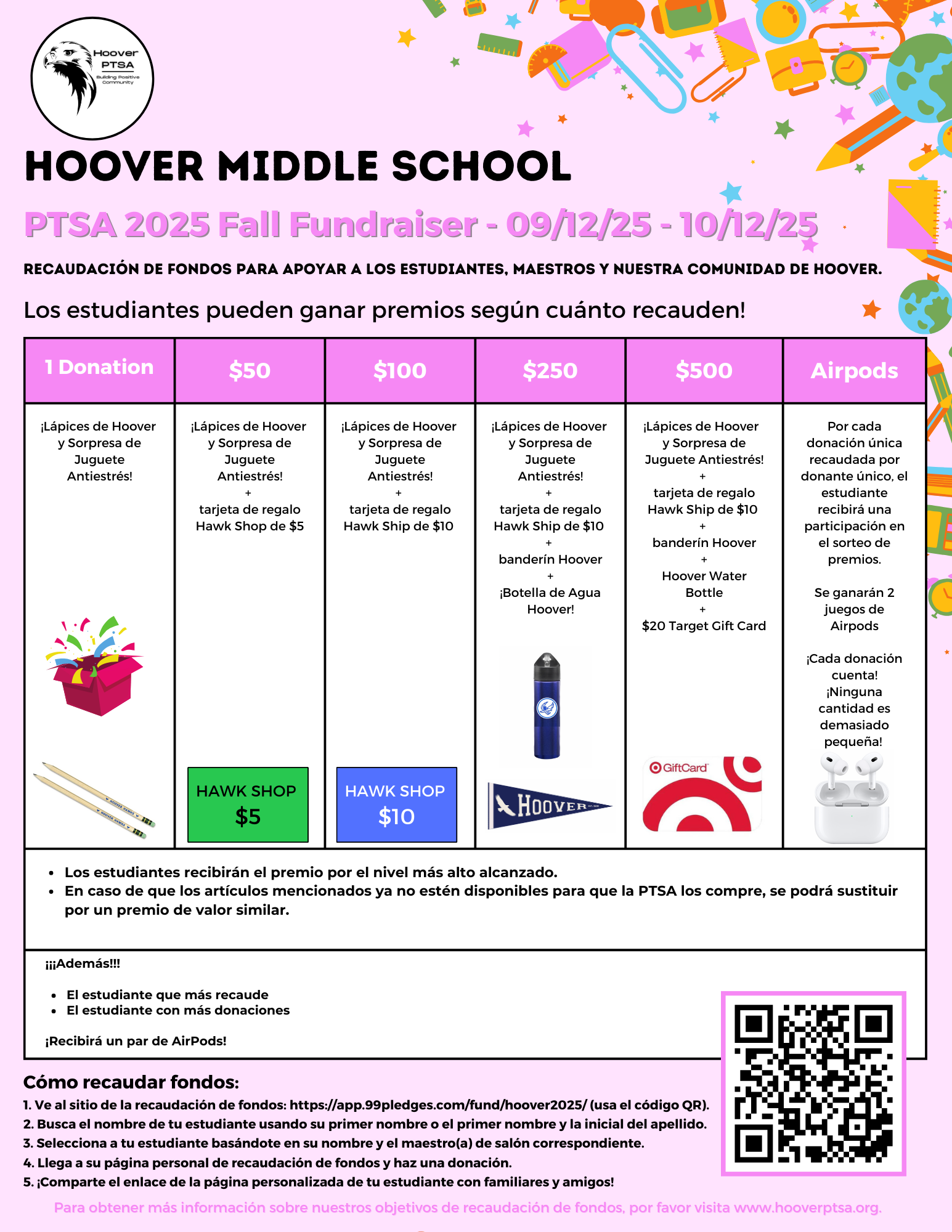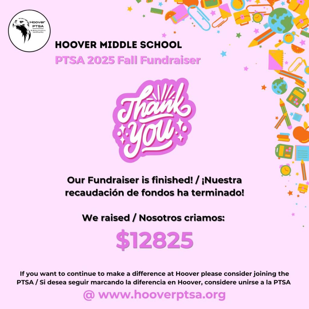 To every donor, every student, every family — THANK YOU for showing up and supporting our Hoover Hawks. Your donations directly support our students’ growth, learning, and leadership. As a Title 1 school, your impact goes even further. ![]()