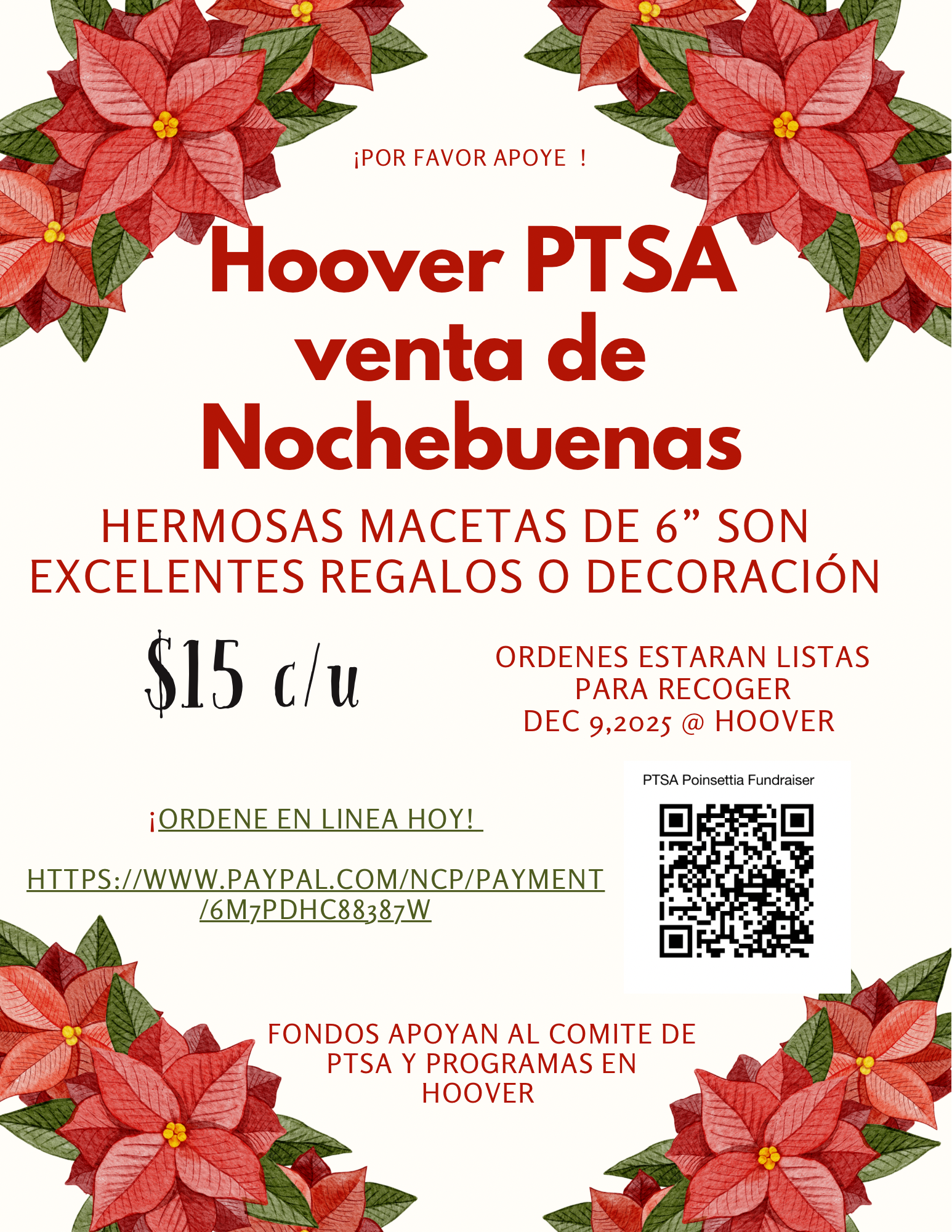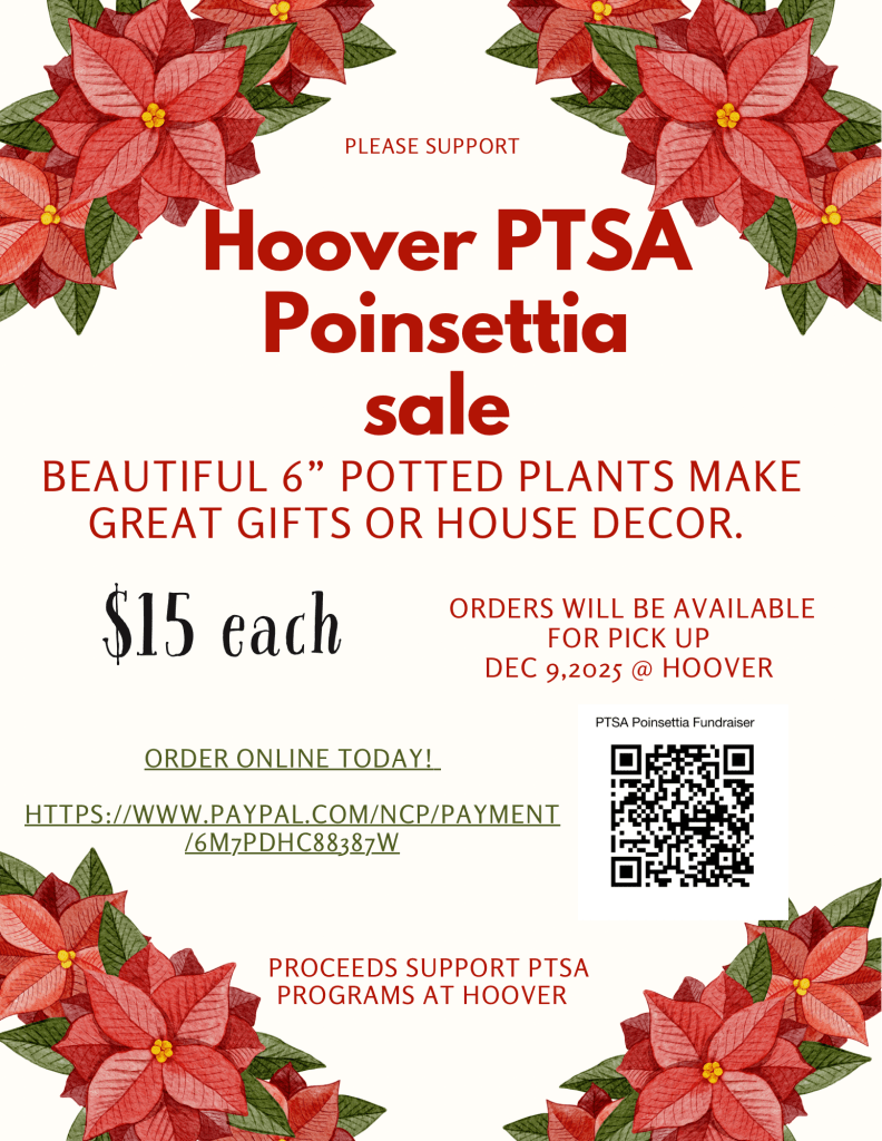 Purchase beautiful Poinsettias for the holiday season and support the Hoover PTSA! Here is the link to place your order!
